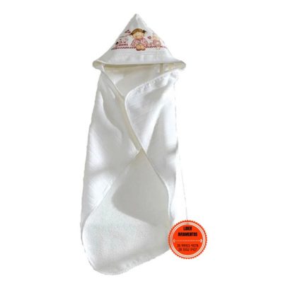 A toalha de banho com capuz Artesanalle possui uma barra para pintura, aplicações e bordados com 11 cm de altura. O tecido do corpo é aveludado e felpudo, 85% no minimo de algodão, super macia e com secagem eficiente.